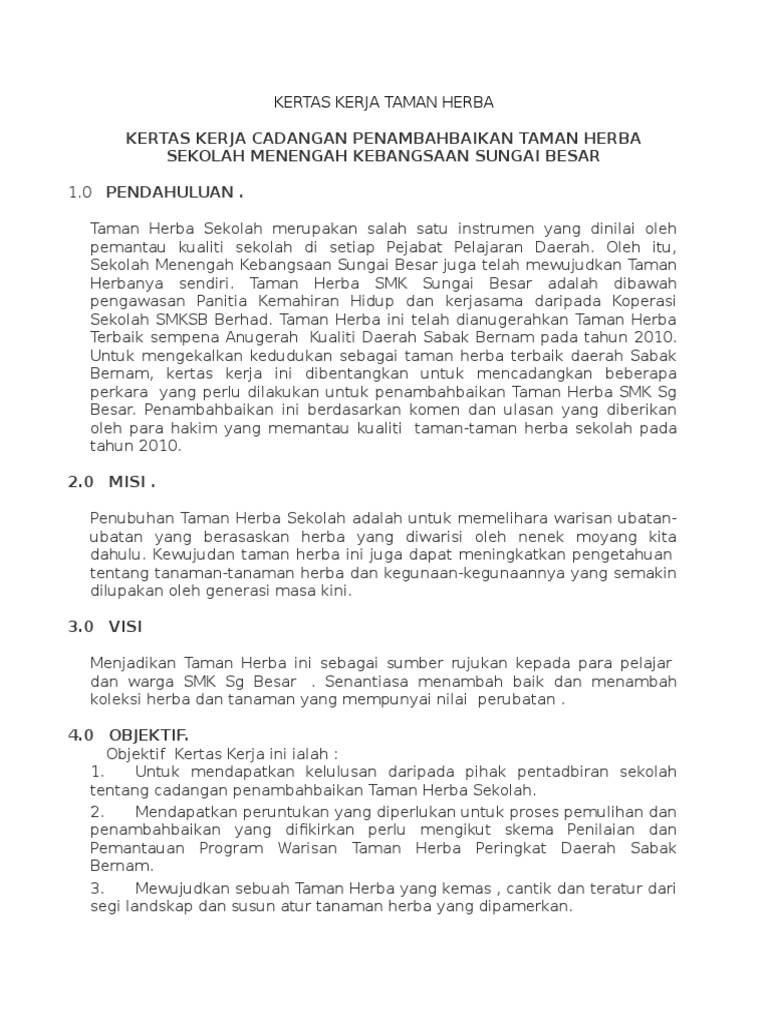 Kertas Kerja Taman Herba Sekolah Pdf